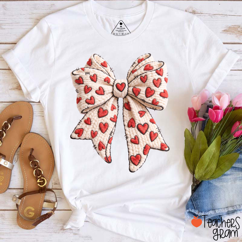 Faux Yarn Coquette Bow Heart Teacher T-Shirt