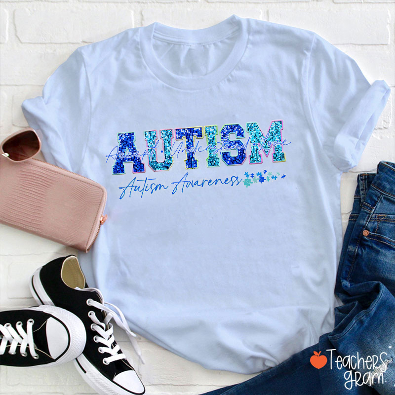 Glitter Accept Understand Love Autism Awareness Teacher T-Shirt