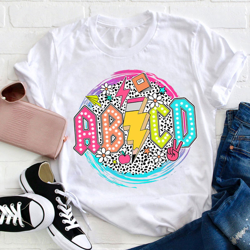 Let's Learn ABCD Colorful Lights Teacher T-Shirt
