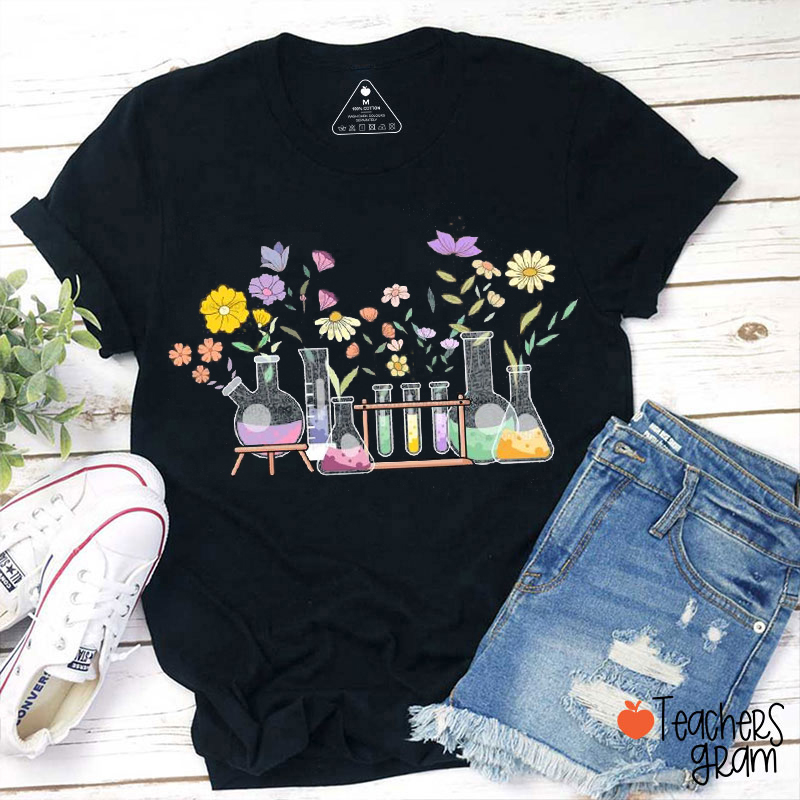 Floral Beakers Chemistry Lab Science Teacher T-Shirt