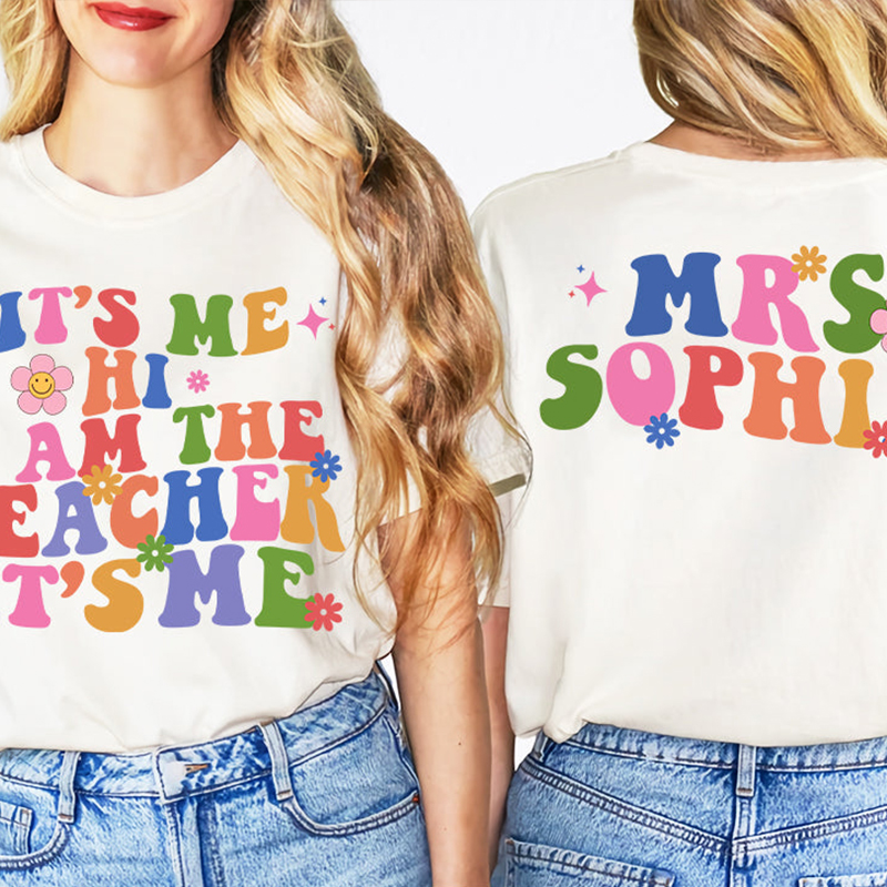 Personalized Name And Text It's Me Teacher Two Sided T-Shirt