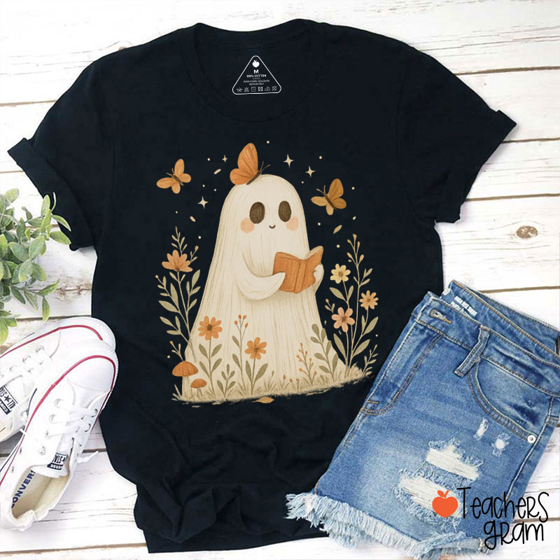 Espooky Vibes Flowers Ghost Spanish Teacher T-Shirt