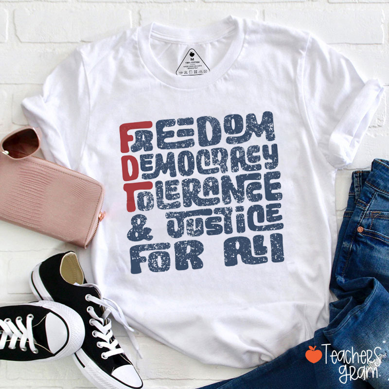 Freedom Democracy Tolerance And Justice For All Teacher T-Shirt