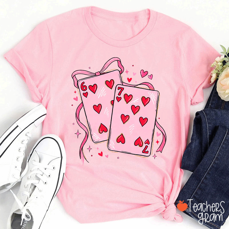 Pink Heart Cards With Numbers 6 7 Teacher T-shirt