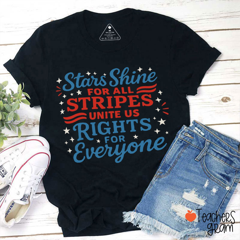 Stars Shine For All Stripes Unite Us Rights For Everyone Teacher T-Shirt