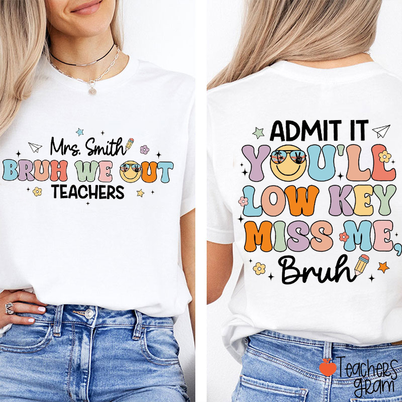 Personalized Name Admit It You'll Low Key Miss Me Bruh Teacher Two Sided T-Shirt