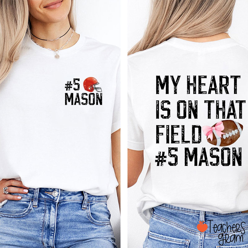 Personalized Sport And Name My Heart Is On That Field Teacher Two Sided T-Shirt