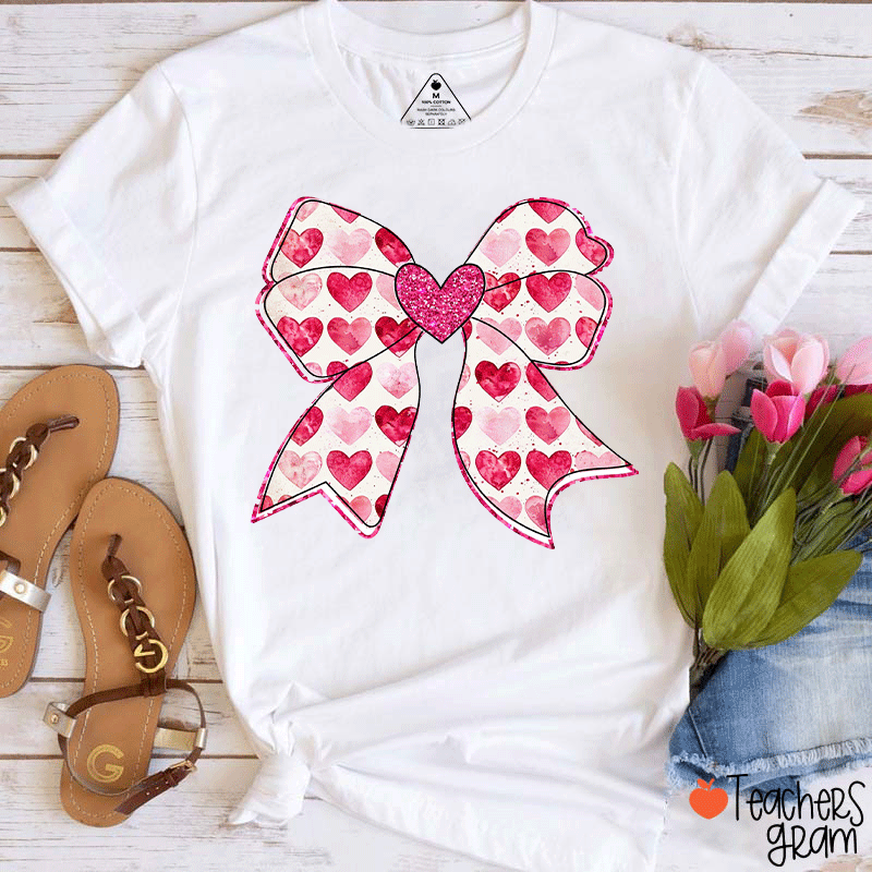 Personalized Name Watercolor Hearts Teacher T-Shirt