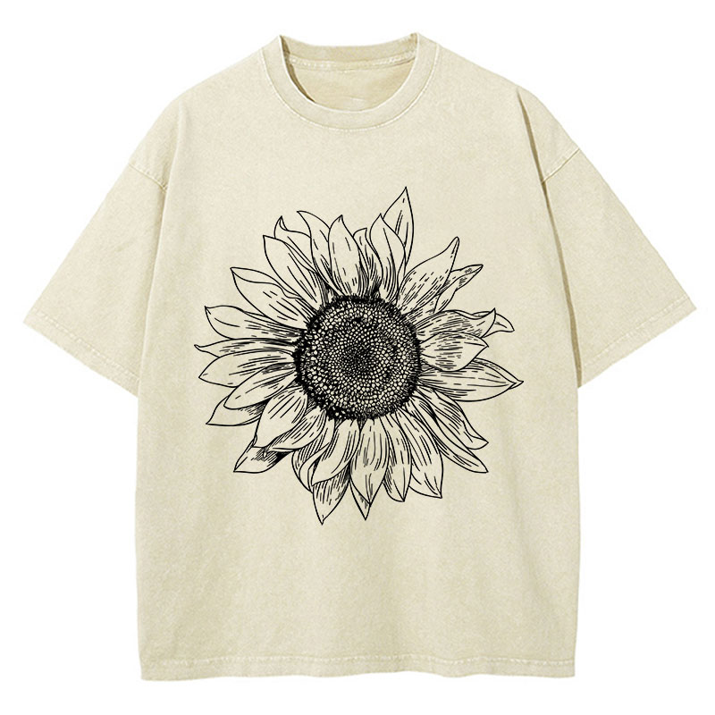 Floral Sunflower Teacher Washed T-Shirt