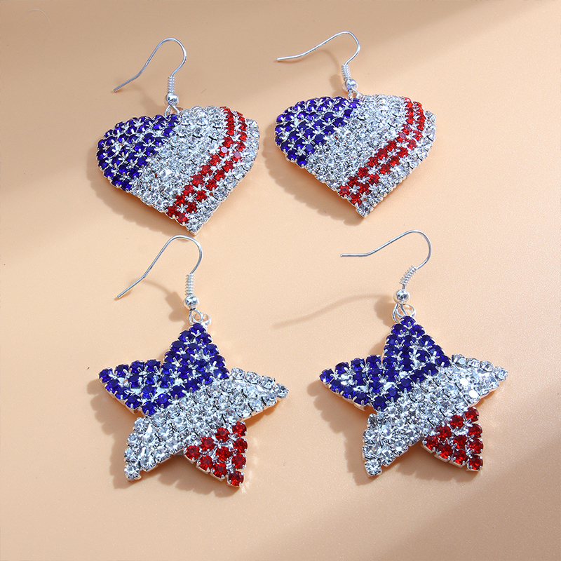 Independence Day Diamond Heart Pentagram Teacher Metal Earrings