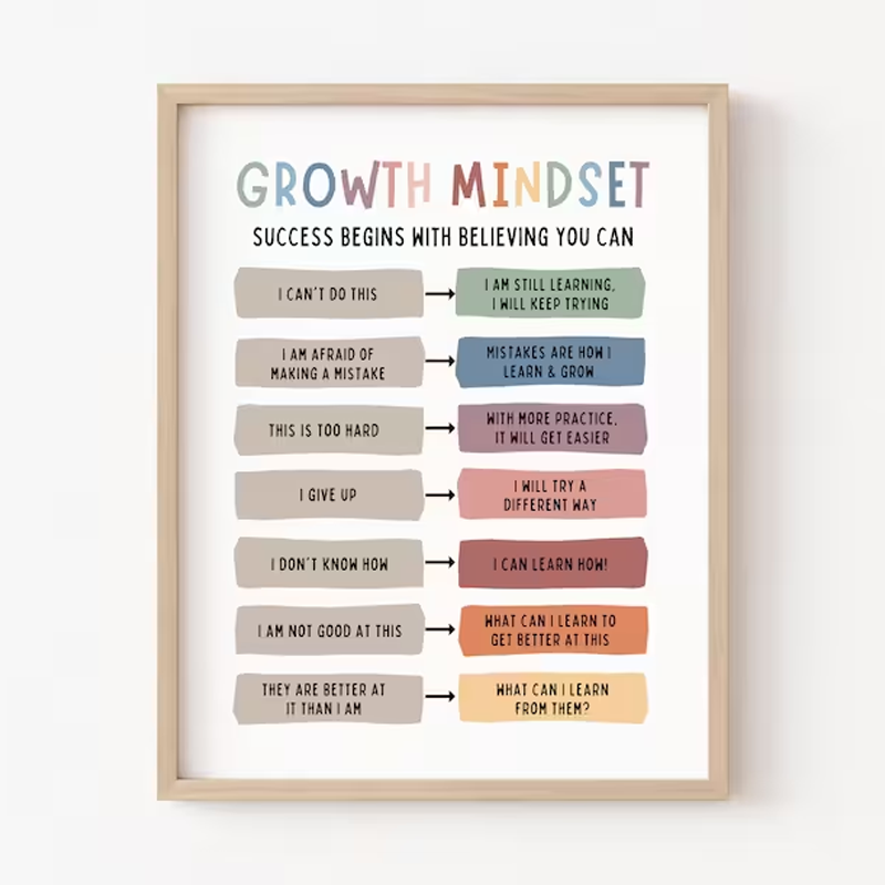 Growth Mindset Is About Believing In Yourself Teacher Wall Art (Without Wooden Frame)