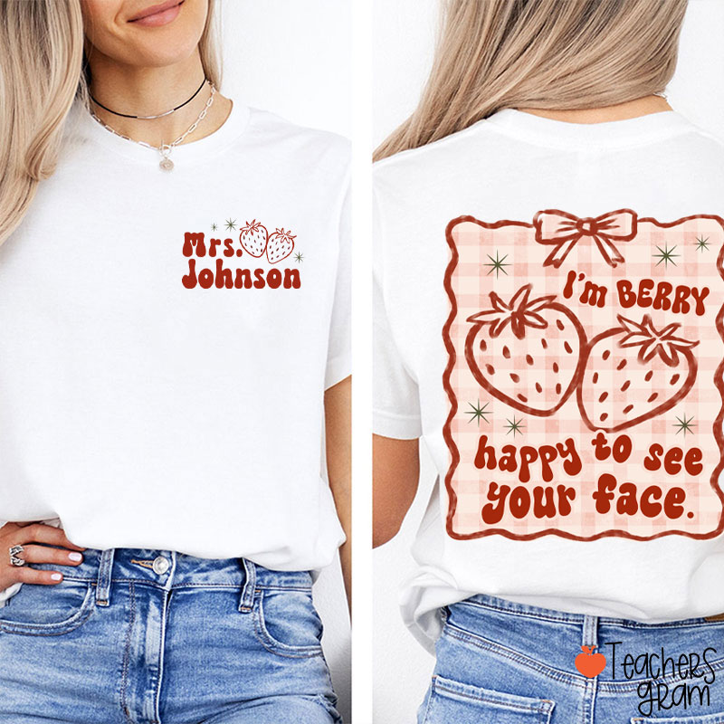 Personalized Name I'm Berry Happy To See Your Face Teacher Two Sided T-Shirt
