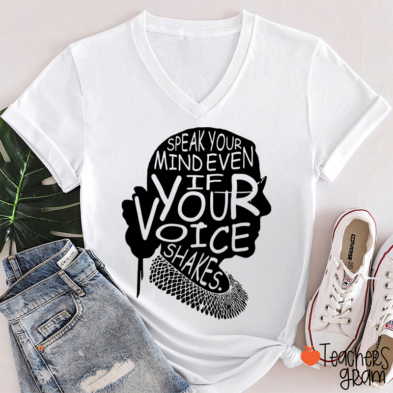 Speak Your Mind Even If Your Voice Shakes Teacher Female V-Neck T-Shirt