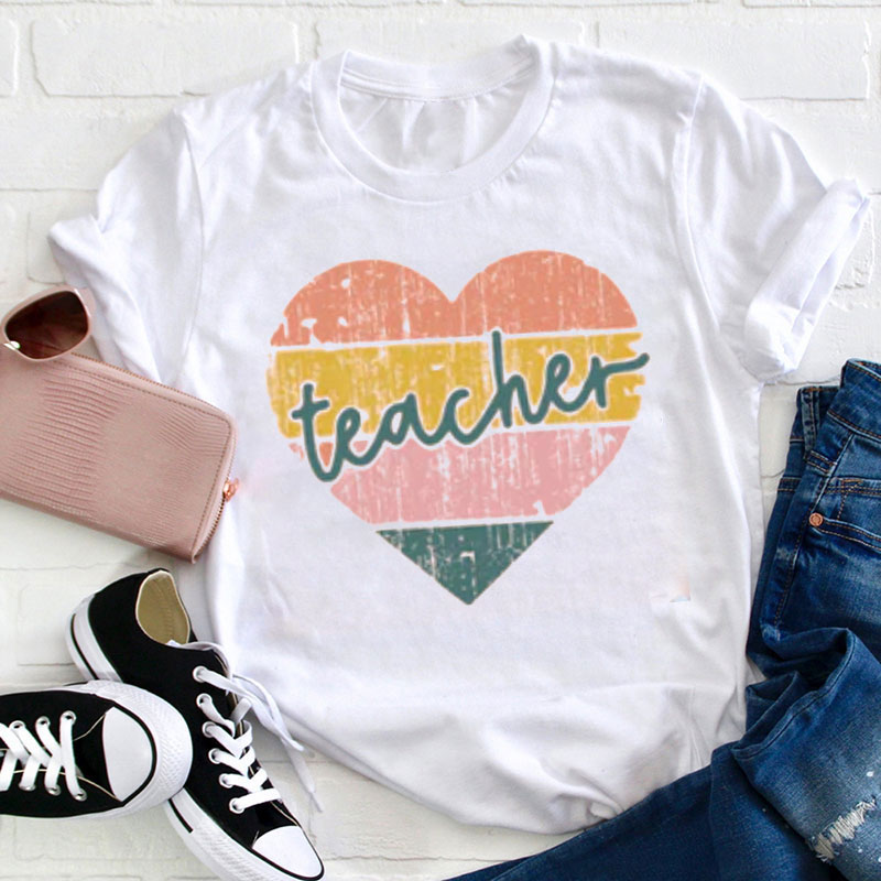 Simple Design Love Heart Valentine's Day Teacher T-Shirt