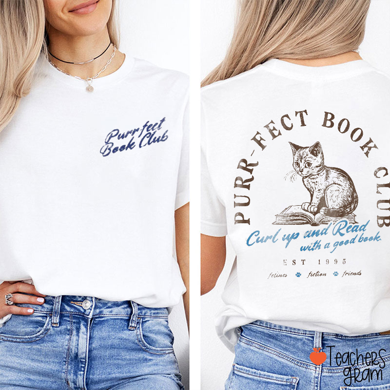 Purr-fect Book Club Teacher Two Sided T-Shirt
