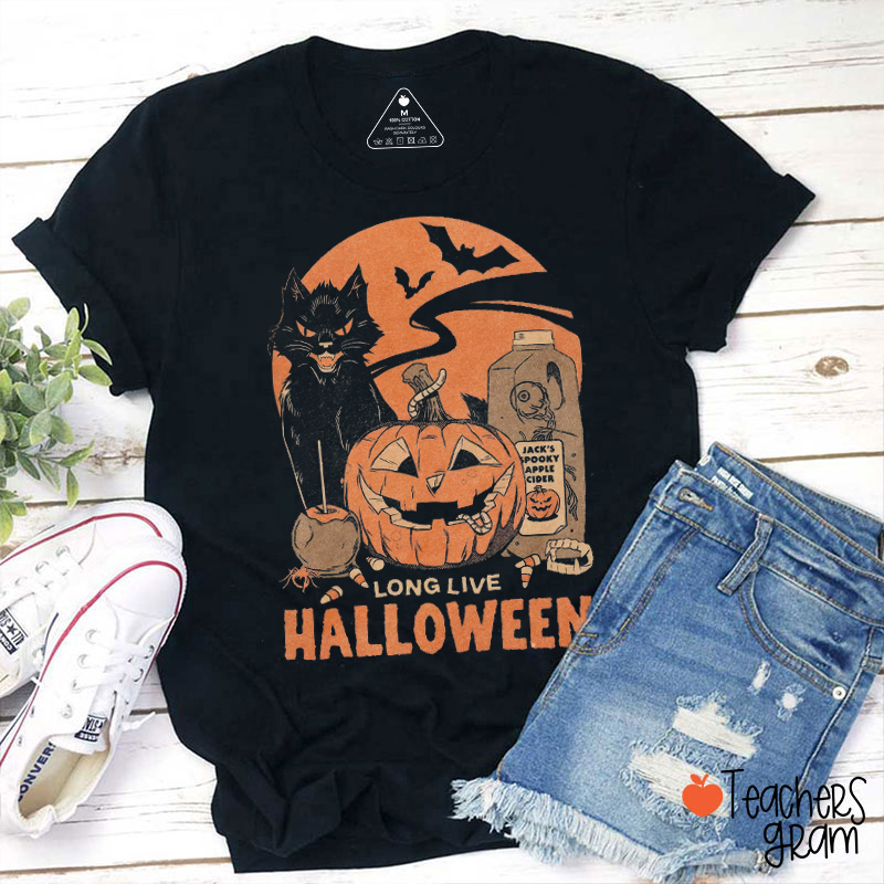 Halloween Long Live Black Cat Teacher T-Shirt