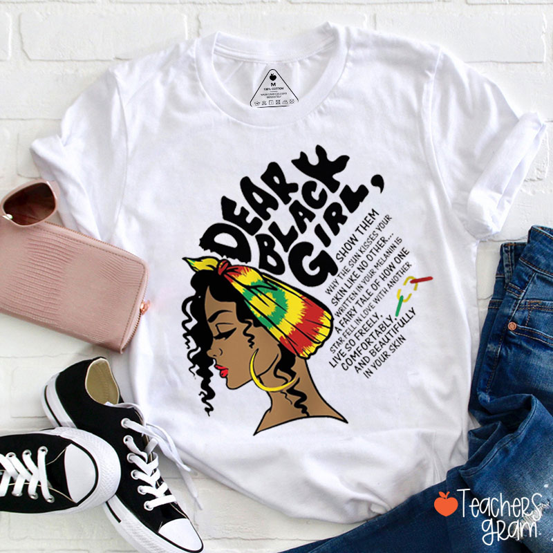 Dear Black Girl Show Them Why The Sun Kisses Your Skin Teacher T-Shirt
