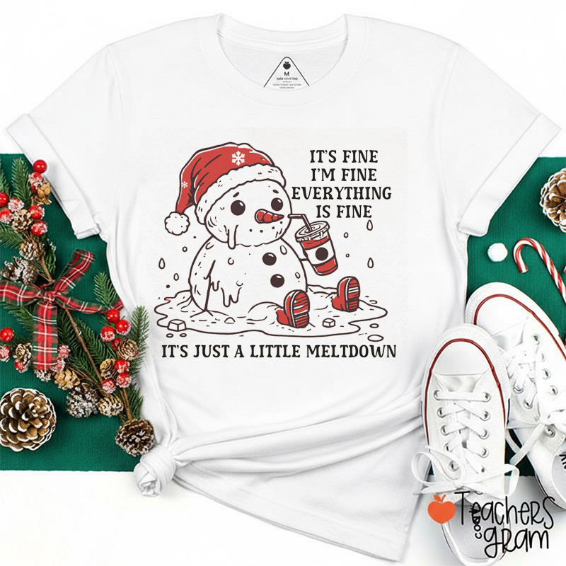It's Fine I'm Fine Everything Is Fine It's Just A Little Meltdown Teacher T-Shirt