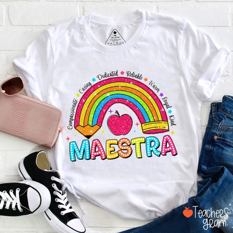 Glitter Maestra Pencil Rainbow Spanish Teacher T-Shirt