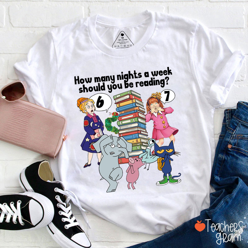 Six Seven Reading Children's Books Cartoon characters Teacher T-Shirt