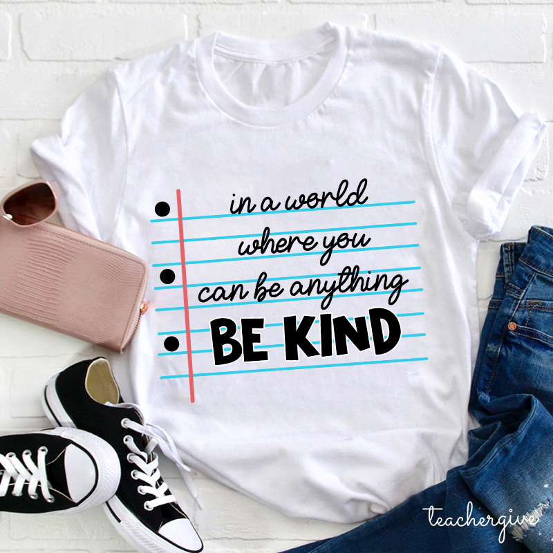 In A World Where You Can Be Anything Be Kind Teacher T-Shirt