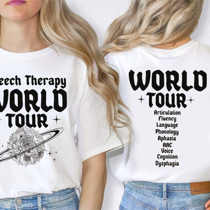 Speech Therapy World Tour Teacher Two Sided T-Shirt