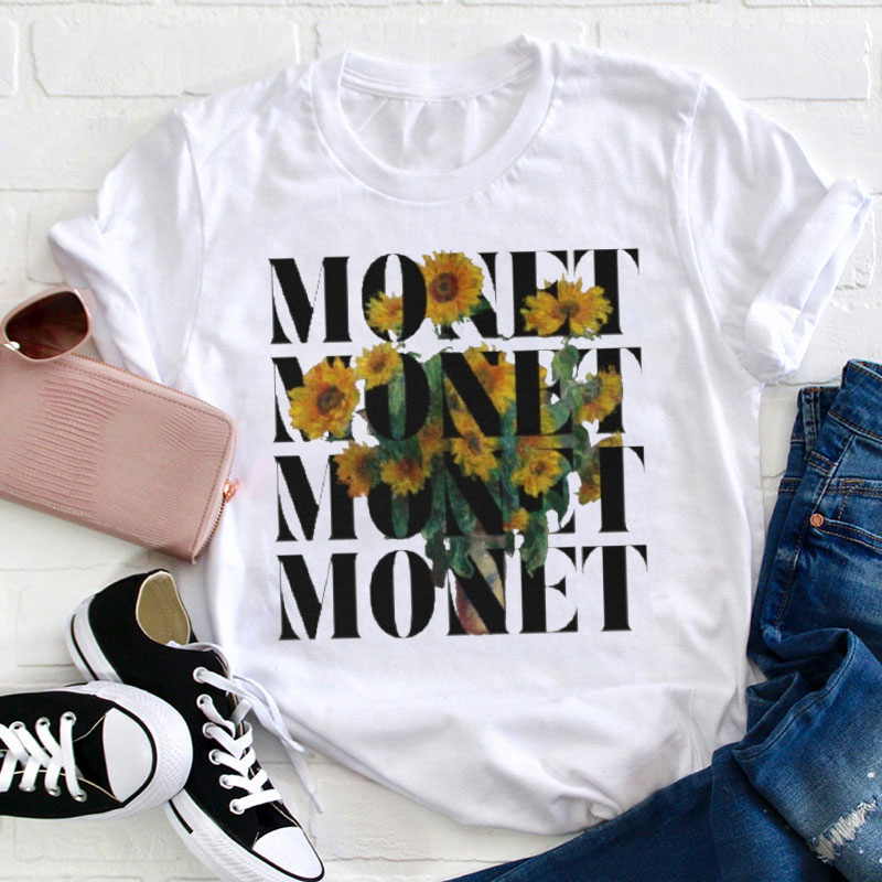 Monet Sunflower Aesthetic Teacher T-Shirt