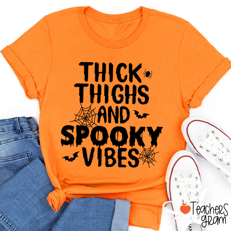 Thick Thighs And Spooky Vibes Teacher T-Shirt