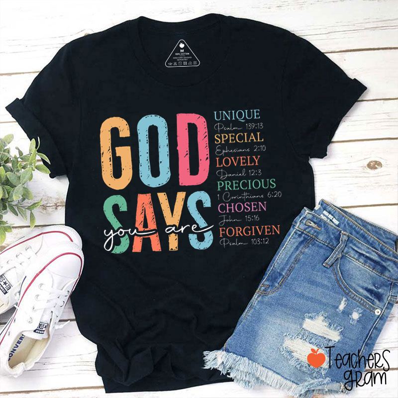 God Says You Are Unique Special Lovely Teacher T-Shirt