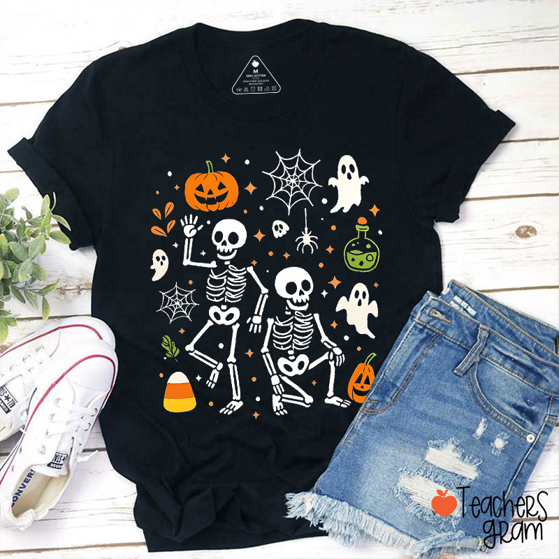 Halloween Skeleton Spooky Season Teacher T-Shirt
