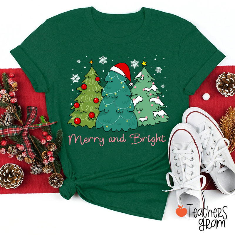 Merry And Bright Christmas Tree Teacher T-Shirt