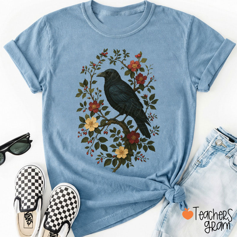 Crow And Floral Graphic Teacher T-Shirt