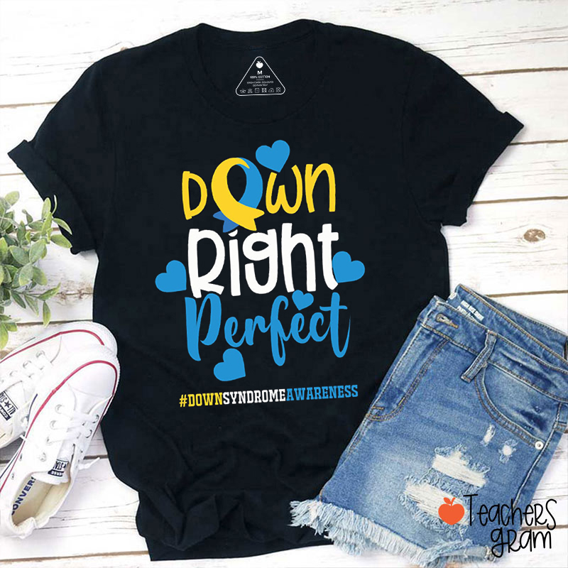 Down Right Perfect Down Syndrome Awareness Teacher T-Shirt