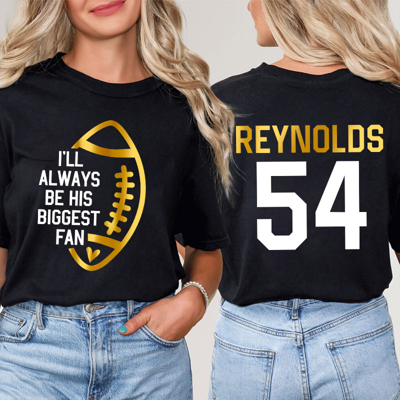 Personalized I'll Always Be His Biggest Fan Teacher Two Sided T-Shirt