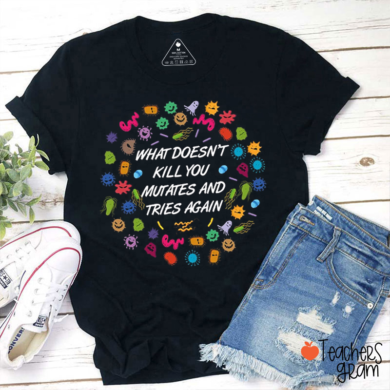 What Doesn't Kill You Muates And Tries Again Teacher T-Shirt