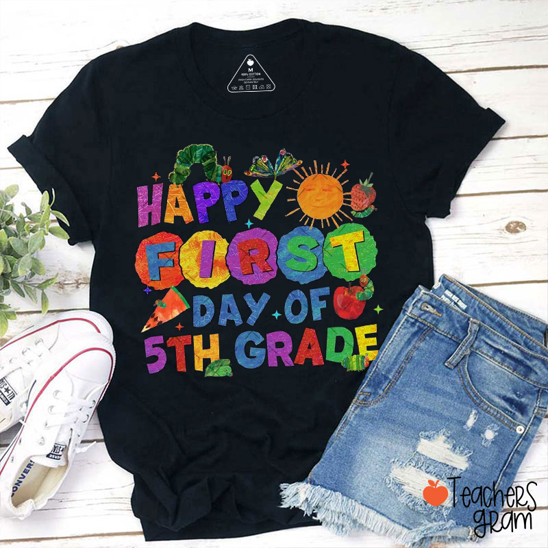 Personalized Grade Happy First Day Caterpillar Teacher T-Shirt