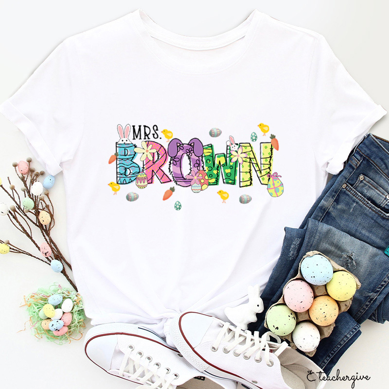 Personalized Easter Bunnies Hoppy Day Teacher T-Shirt