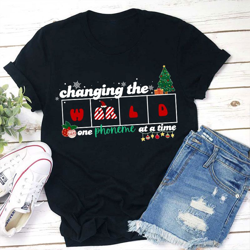Changing The World One Phoneme At A Time Christmas Teacher T-Shirt