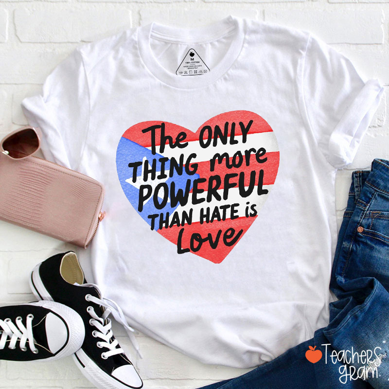 The Only Thing More Powerful Than Hate Is Love Teacher T-Shirt