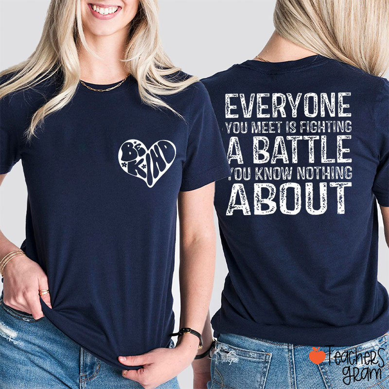 Be Kind Everyone You Meet Is Fighting A Battle You Know Nothing About Teacher Two Sided T-Shirt