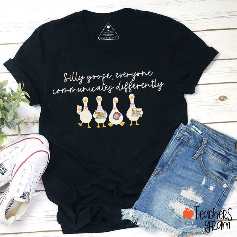 Silly Goose Everyone Communicates Differently Teacher T-Shirt