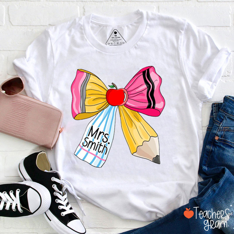 Personalized Name Pencil Crayons Teacher T-Shirt