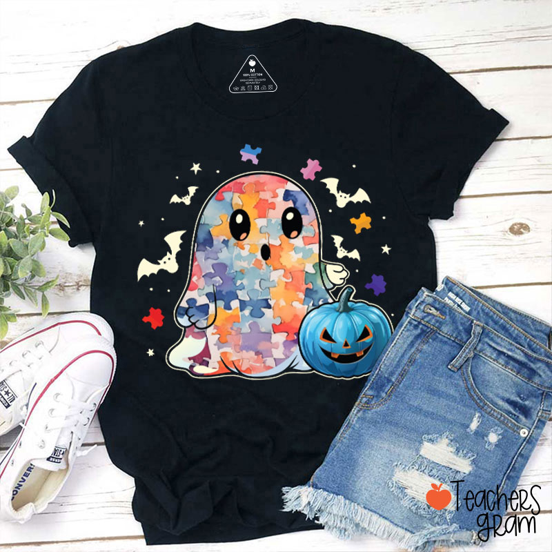 Colorful Puzzle Ghost Teacher T-Shirt