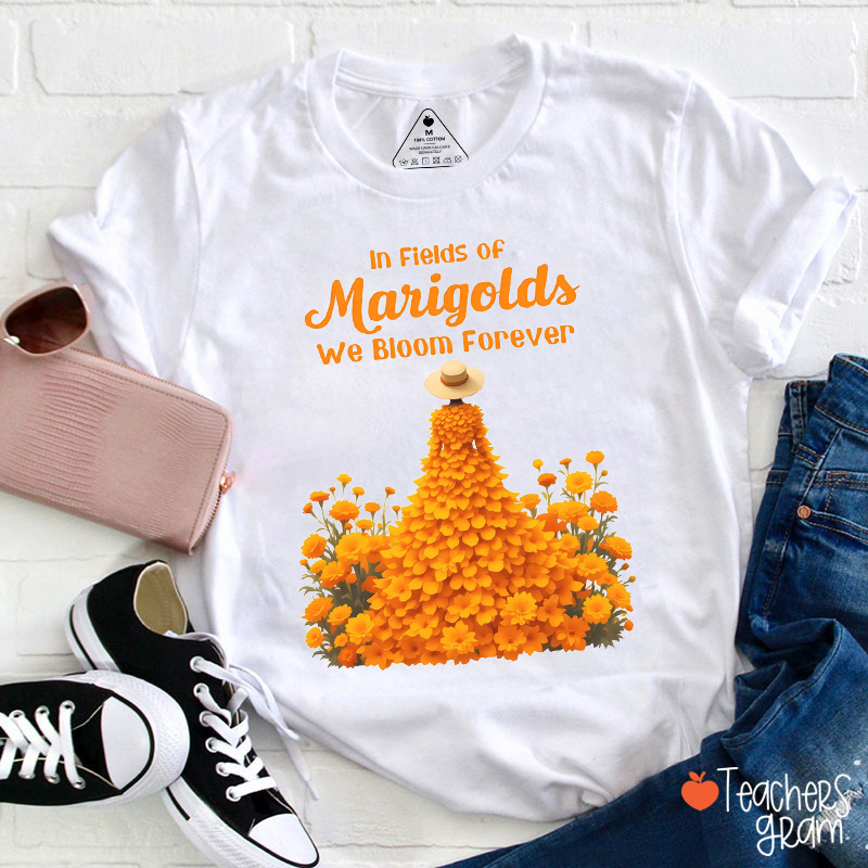 In Fields Of Marigolds We Bloom Forever Teacher T-Shirt