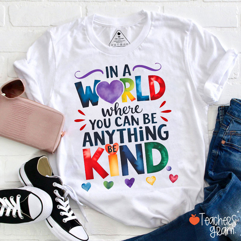 In A World Where You Can Be Anything Be Kind Teacher T-Shirt