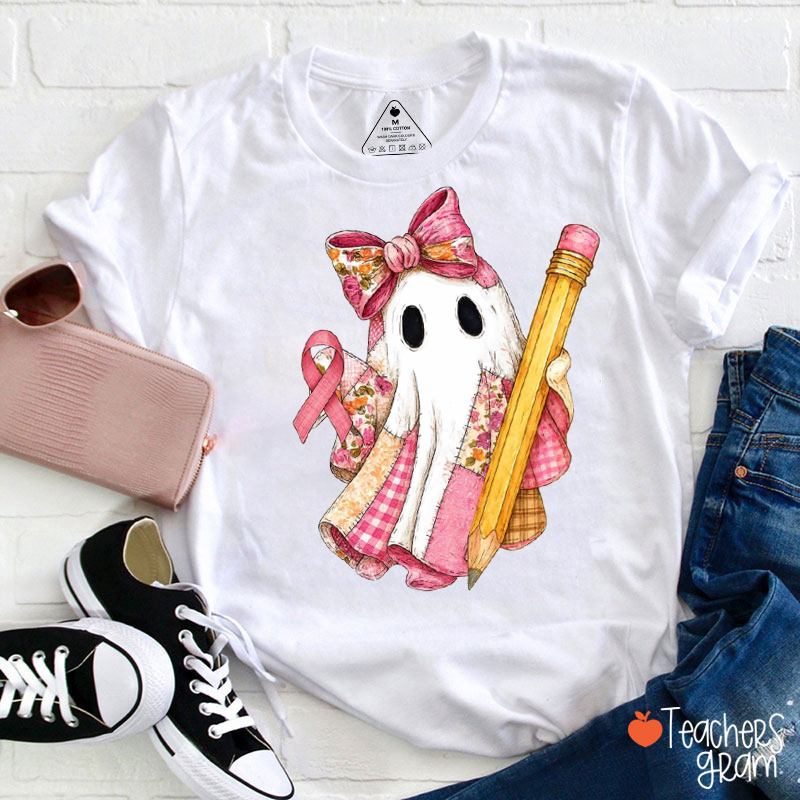 Halloween Bow Tie Ghost Awareness Teacher T-Shirt