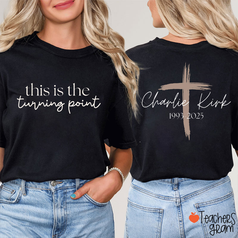 This Is The Turning Point Charlie Kirk Teacher Two Sided T-Shirt
