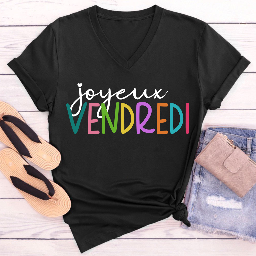 Joyeux Vendredi French Teacher Female V-Neck T-Shirt