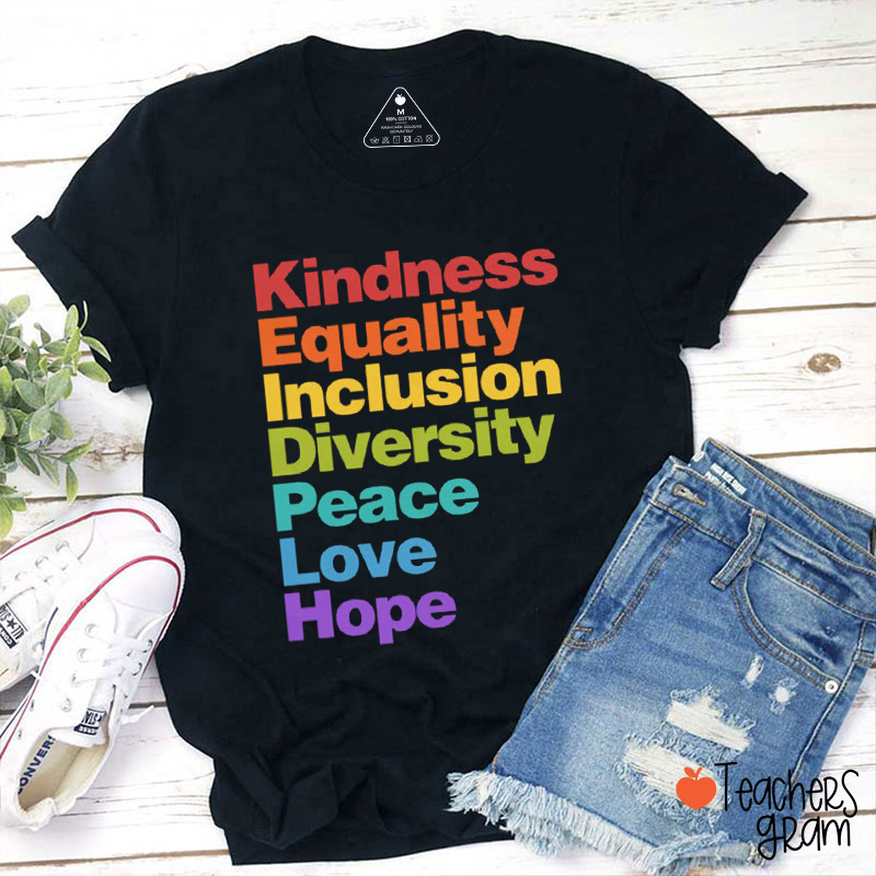 Kindness Equality Inclusion Diversity Peace Love Hope Teacher T-Shirt