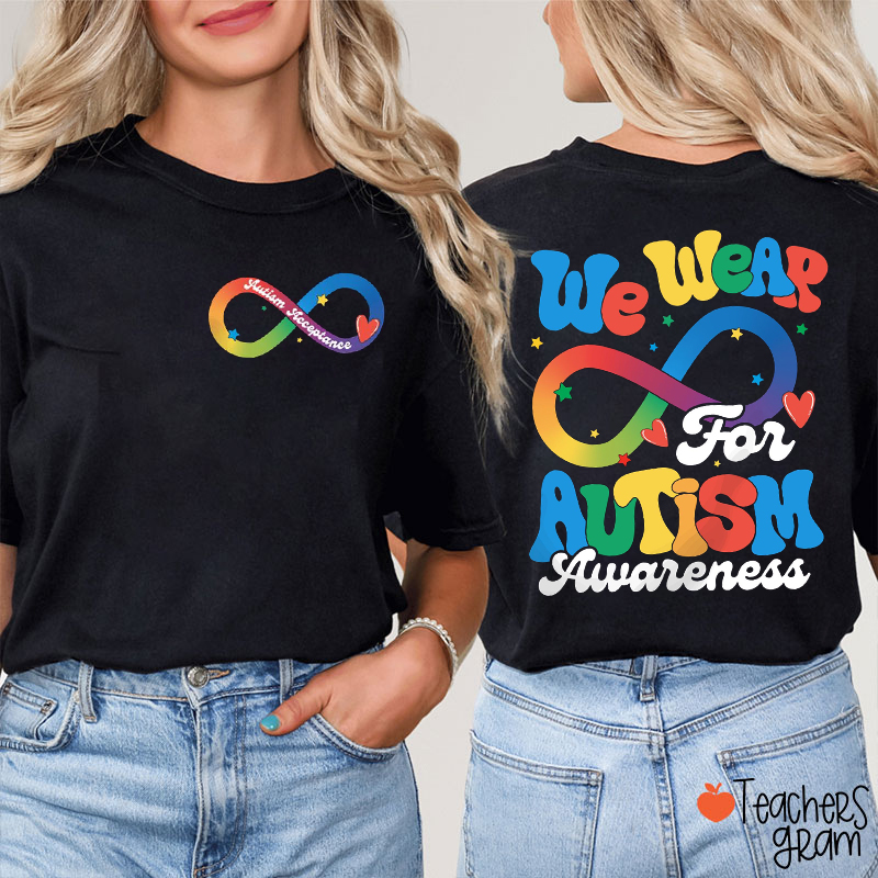 We Wear Rainbow Infinity For Autism Awareness Teacher Two Sided T-Shirt
